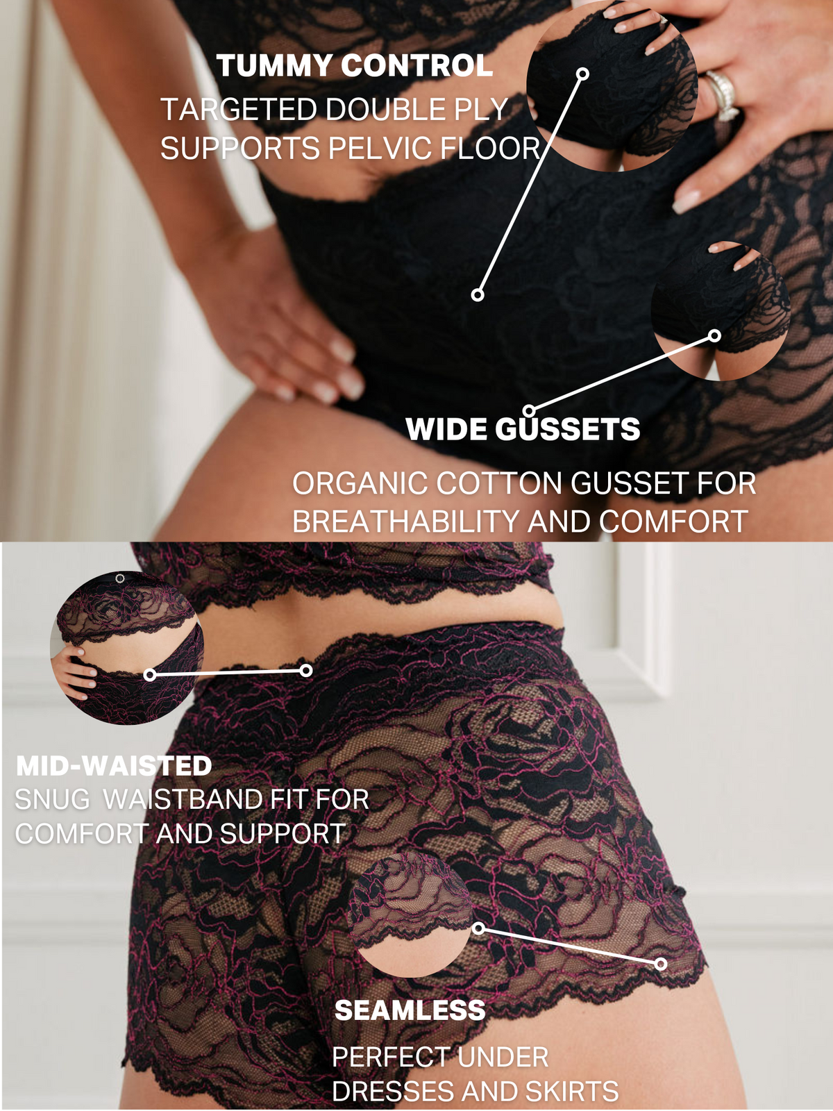 Designed with targeted double ply tummy control, our Lenea Control Boyshort is a must-have under skirts and dresses for postpartum mamas, menopausal women, and anyone needing pelvic floor support.
